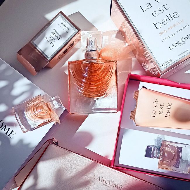 A feminine and elegant fragrance with top notes of blackcurrant and pear, heart notes of iris, jasmine, and orange blossom, and base notes of patchouli and vanilla.
